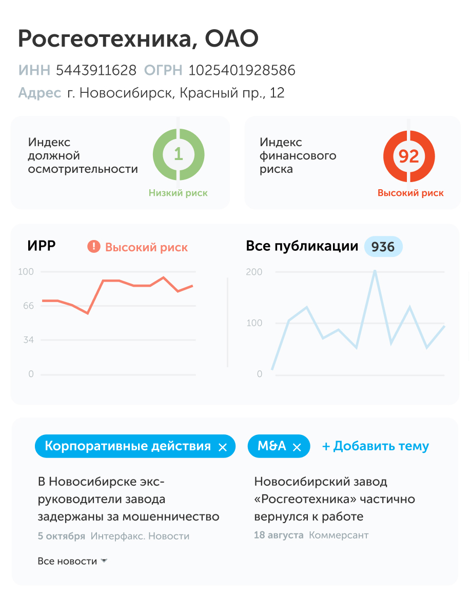 Поиск по этим данным поможет выбрать надёжных поставщиков, выдать обоснованные кредиты платёжеспособным заёмщикам и снизить риски для своего бизнеса.